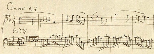Felix Mendelssohn hallitsi myös ”vanhanaikaisen” kaanontekniikan. Yllä on näyte tanskalaiskirjailija H. C. Andersenille lähetetystä tervehdyskaanonista syksyllä 1840.