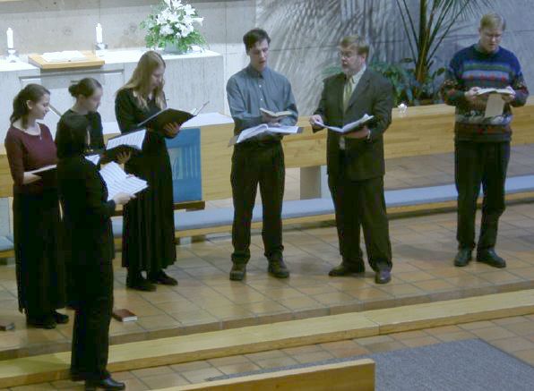 Kuvat 1 - 4: Päätöspäivän laudeksen toimittivat Keravan kanttorit Eija Repo ja Janne Kaksonen. Herkkänä kuorona lauloi Oodi.