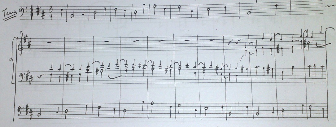 Passacaglian luonnokset on kirjoitettu tiiviisti kolmelle nuottisivulle.* Teeman esittelyn ohessa säveltäjä testaa kaanonmuunnelman mahdollisuutta. Siinä teema poikkeaa Südan lopulta valitsemasta muodosta: