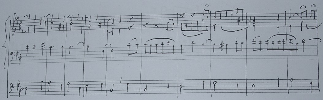 Passacaglia on torsonakin vaikuttava. Tallinnan tuomiokirkon urkuri Ene Salumäe keksi soittaa Süda-konsertissaan tammikuussa 2008 Passacaglian luonnokset alusta loppuun ja lopusta alkuun! Näin kaari kohosi huipennukseen puolivälissä ja palasi yksiääniseen teemaesittelyyn ympyrän sulkien. Tämän idean pohjalta olen samoin palannut viidennestä variaatosta alkuun (tosin suoraan ensimmäiseen variaatioon ja kaanonvariaatioon) ja jatkanut sitten omalla pienellä epilogilla. Mp3-näyte tästä on soitettu Järvenpään kirkon uruilla. Nuottikuvia klikkaamalla saat soimaan kunkin variaation ääninäytteet, jotka on soitettu Helsingin Vanhankirkon uruilla ja Järvenpään kirkon uruilla (jh 08).